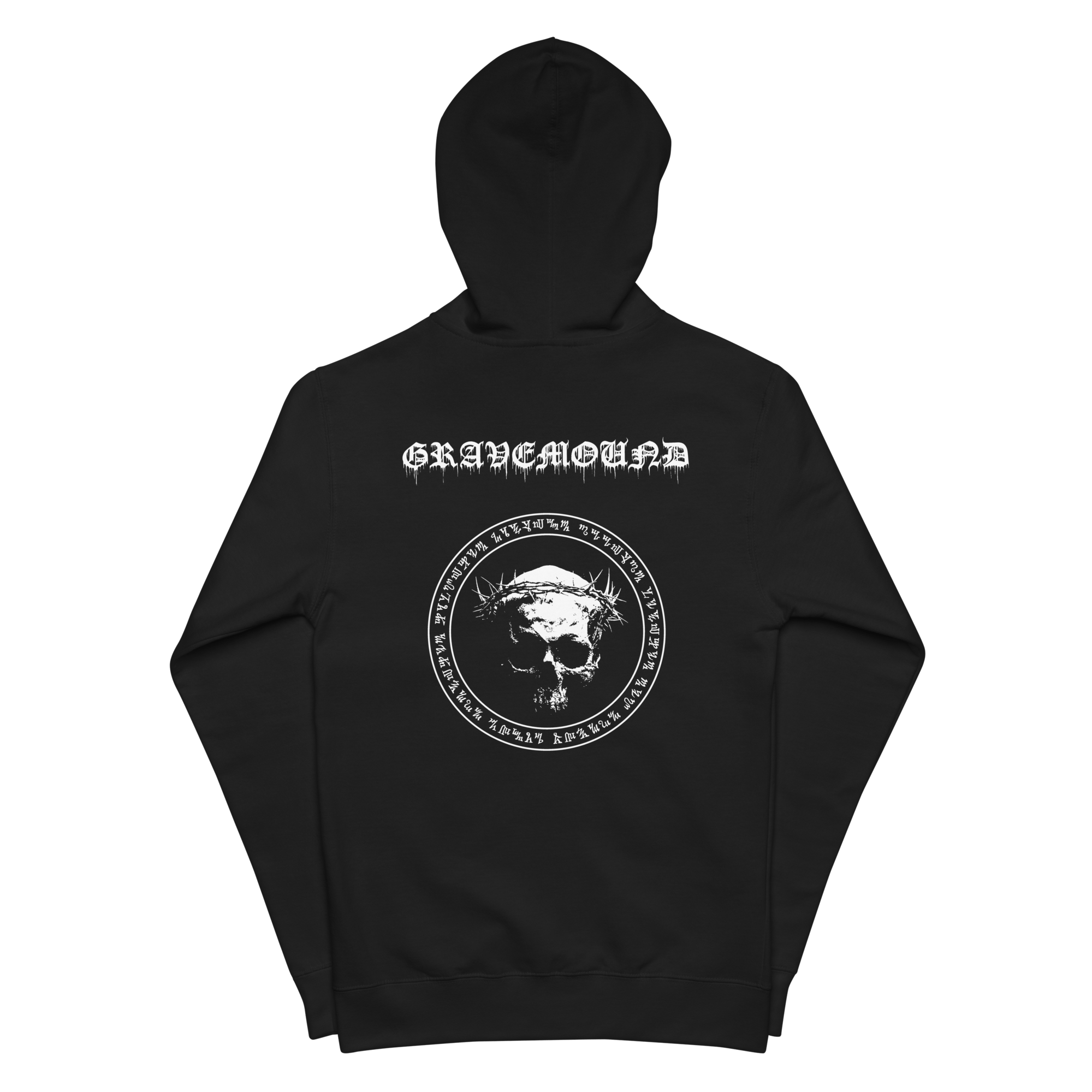 Heavyweight black hoodie featuring Gravemound's sigils.